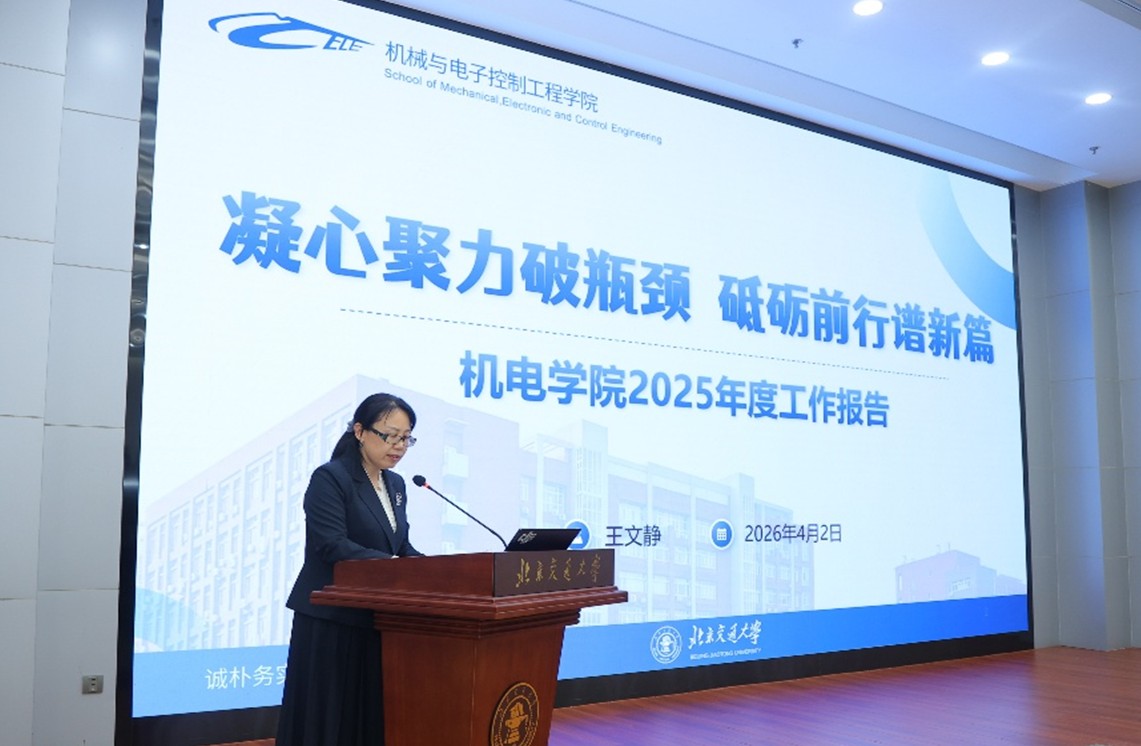 王文静表示,过去一年学院各项工作扎实开展,取得积极成效,荣获学校2025年度“思源杯”“伯乐奖”,对全院老师的共同努力表示感谢。她全面总结了学院“十四五”期间在人才培养、师资队伍建设、科学研究和对外交流等方面的成效和存在的问题,对“一校多区”格局下学院面临的机遇和挑战进行了系统分析,并从扎实推进本科大类人才培养与专业建设、持续深化研究生教育教学改革与内涵建设、构建机电特色“大思政”育人体系、统筹推进学科规划与重点任务、强化有组织科研攻关、持续加强国际化人才培养与对外交流、以高质量党建引领学院事业高质量发展等7个方面对学院2026年度重点工作进行了全面部署。她号召全院教职工抢抓机遇、砥砺前行,为学院“十五五”时期发展开好局、起好步,共同推动学院事业再上新台阶。